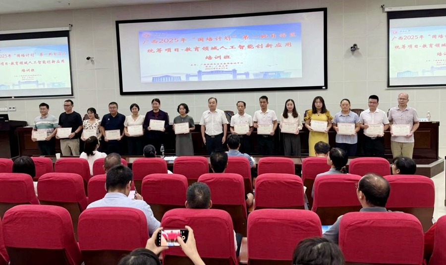 9月25日,广西2025年“国培计划”第一批自治区统筹项目——教育领域人工智能创新应用培训班在我校结业,广西大学继续教育学院副院长徐华出席结业式并致辞,广西大学继续教育学院梁君华老师主持结业式。