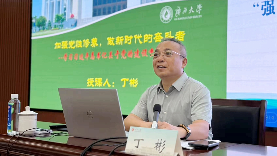 广西大学马克思主义学院形势与政策教研部党支部书记丁彬教授为学员作专题授课
