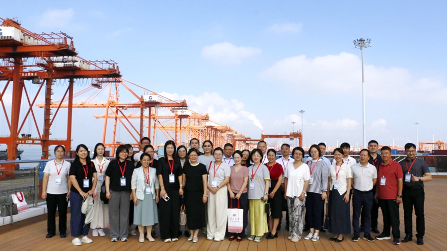 实践调研环节,培训班采取“理论与实践并重、高校与地方联动”的方式,深入五象云谷AI智算产业园感受人工智能赋能教育科技前沿的魅力,走进平陆运河马道枢纽及钦州港自动化码头的建设现场,探索高校智库服务国家重大工程的实践路径;教育服务组学员先后走访北部湾大学教育学院、钦北区大寺镇中心小学与大寺中学及钦州市教育局,围绕高校师范教育与乡村教育需求衔接机制、高校与小学结对帮扶机制、初中课程改革与职业教育情况,数字教育工具应用与挑战等进行调研、座谈;产业赋能组学员则走进中国船舶集团广西造船有限公司、中伟新材料股份有限公司钦州产业基地、中马钦州产业园区、广西睿智科技有限公司及钦州市发改委等地,了解绿色智能船舶修造、新能源材料生产研发与产业链布局、西部陆海新通道建设及广西自贸区建设等情况,并围绕国家战略、科技赋能等相关情况开展座谈。